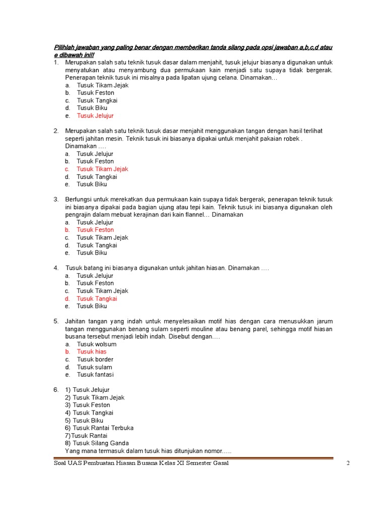 Soal Pembuatan Hiasan Busana Kelas 11 Pdf